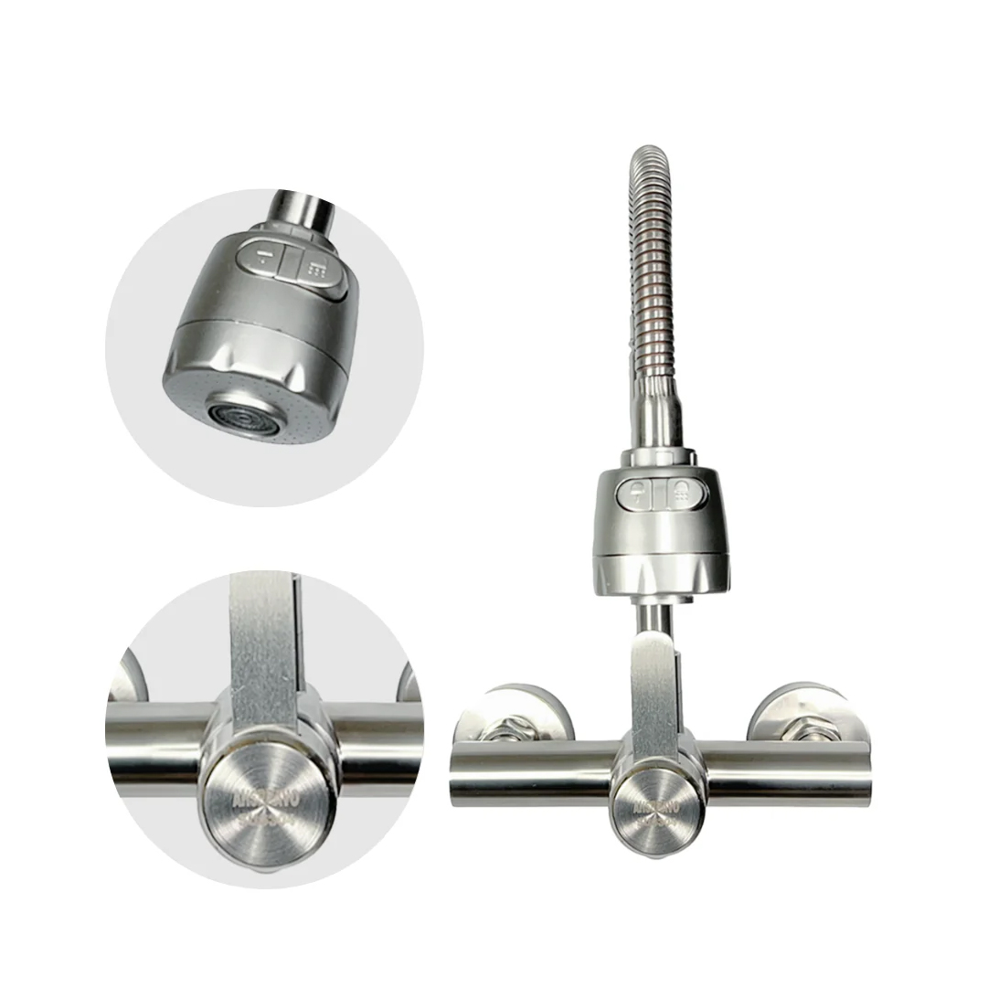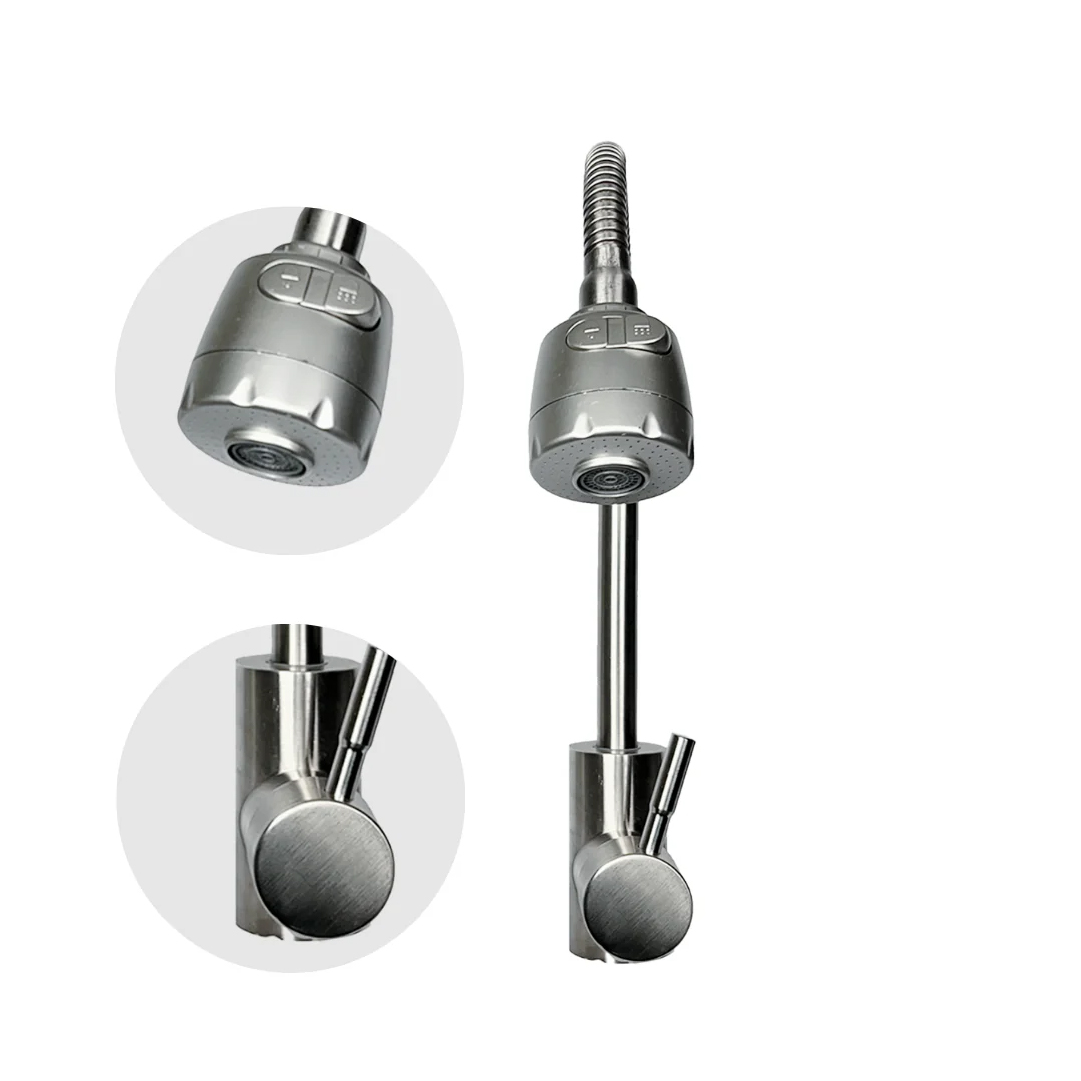 Upgrade your kitchen experience with this 360° movable shower neck mixer, crafted from premium stainless steel. Designed for flexibility and durability, it allows smooth rotation for easy washing and cleaning, while its sleek finish adds a modern touch to any kitchen.